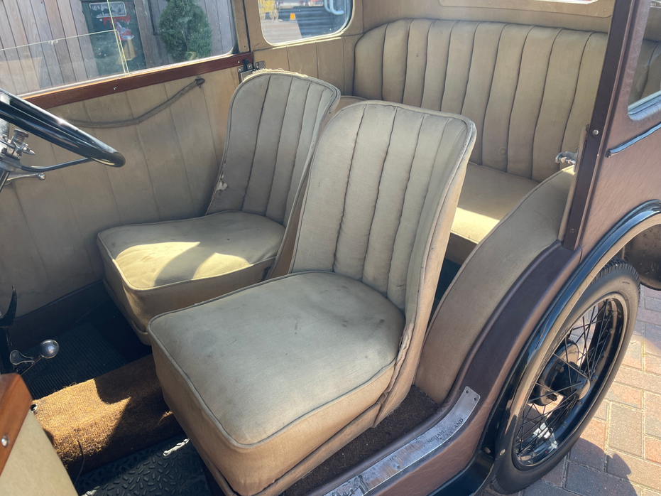 This 1928 Austin Seven was first registered in March of that year. It is one of 12,675 fabric-bodied saloons built between 1928 and 1930, this 'top hat' car is a rare survivor - it is estimated that around 95 of these fabric bodied Austin's exist.