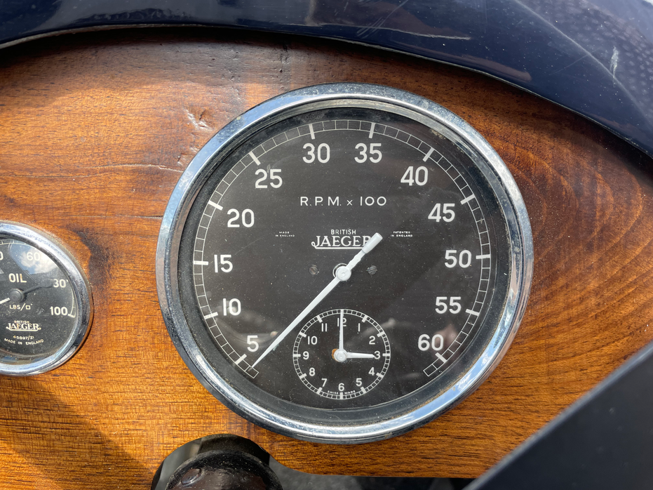 This Singer was manufactured new in 1936, little is known of the Singer's early history until the 2000's when it was provided with a full restoration in 2003. A Le-Mans style body was fitted with cycle wings and finished in Dark Blue. It was fitted with a larger capacity 1074cc engine with twin SU carburettors and corresponding gearbox.