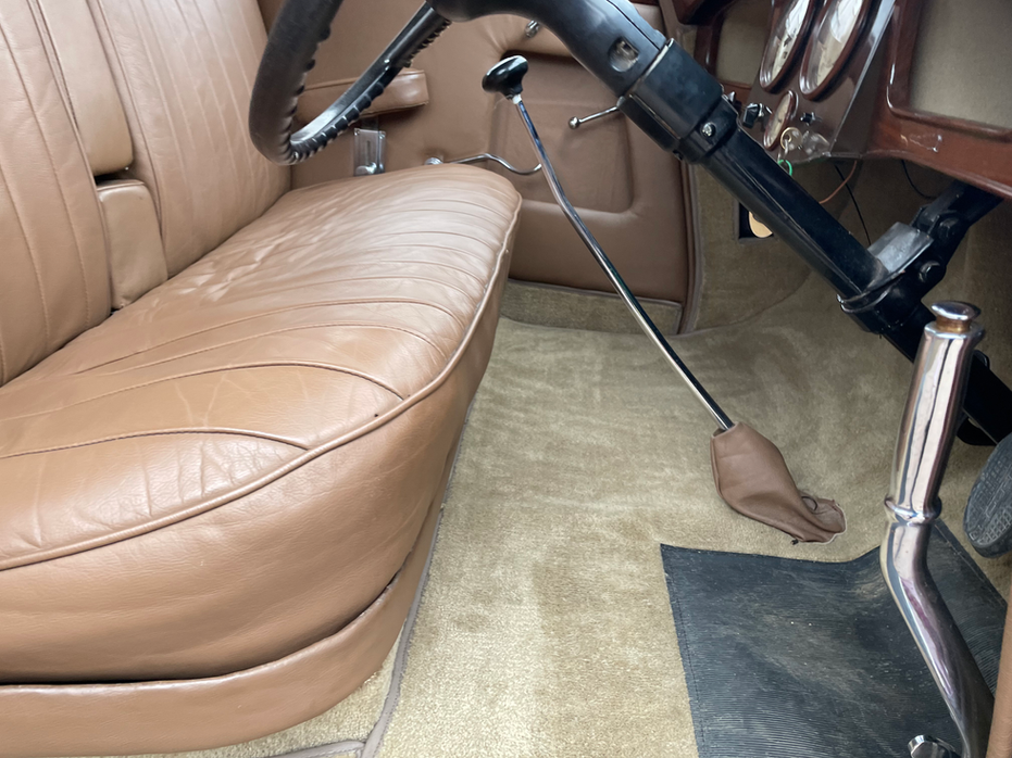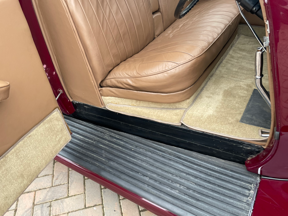 Had 9k spent on it on a full engine re-build, was bought from new in 1938 by the founders of the Nobel Peace Prize and was used during WW2 as a WD transport car after which it was sprayed from it’s original colour of black to grey and was used in a film. It was then sold on and was fully restored and painted the colour it is now and was put in long-term storage. It has a 3860cc engine, the body has survived very well and is in good condition, the cream leather interior is in great condition.